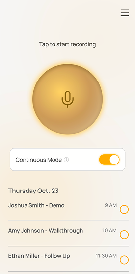 Siro pulls your team's upcoming appointments from your CRM and surfaces them as appointment reminder cards in Siro. Reps tap on a card to start recording. Siro automatically links the conversation to the right opportunity. No missed recordings. No misattributed recordings.
